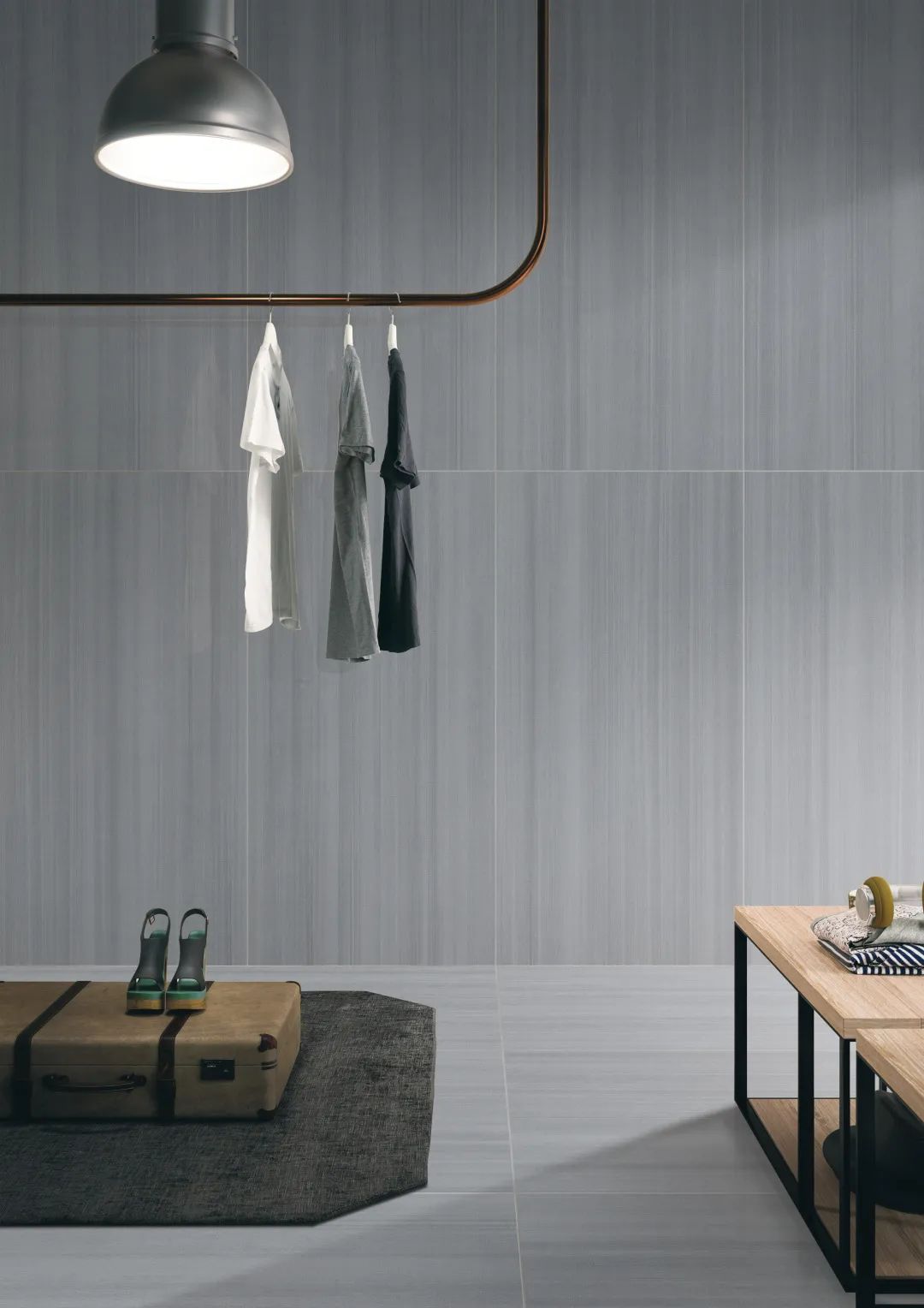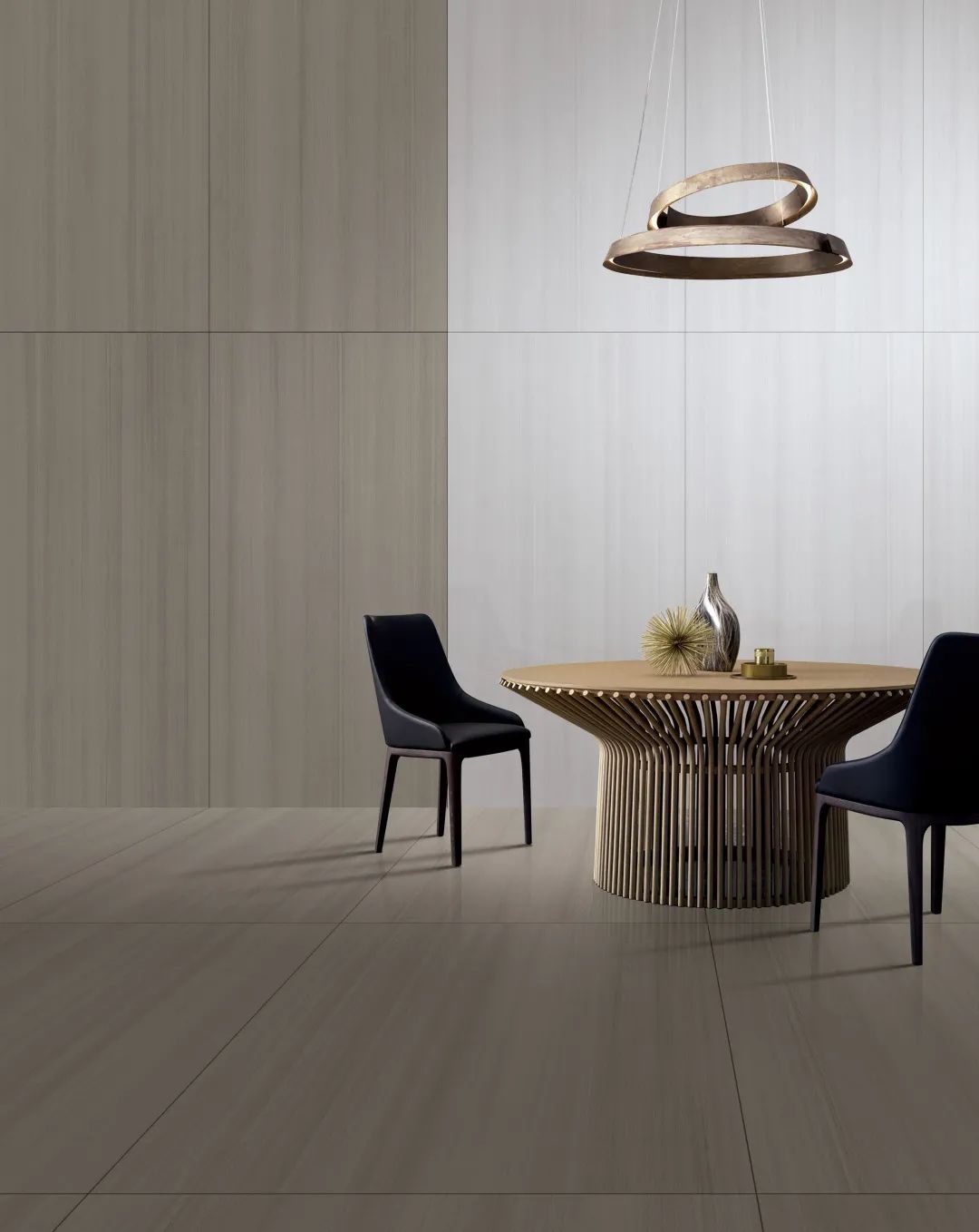 細(xì)密有致的豎條紋理從墻面延伸下地,營(yíng)造空間立體感。