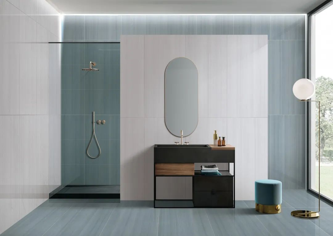 想要打造個(gè)性和具有層次感的空間,衛(wèi)生間的墻地或干濕區(qū)可以選擇“布洛克”不同色系的兩款產(chǎn)品進(jìn)劃分裝飾。