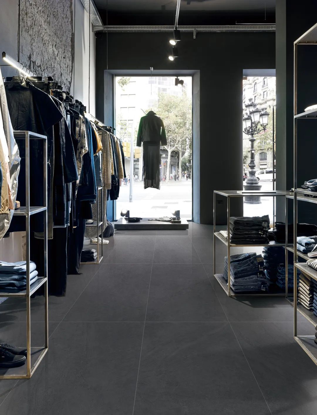 選用深灰系裝飾品牌服裝店,契合消費(fèi)者年輕時尚的穿衣風(fēng)格。