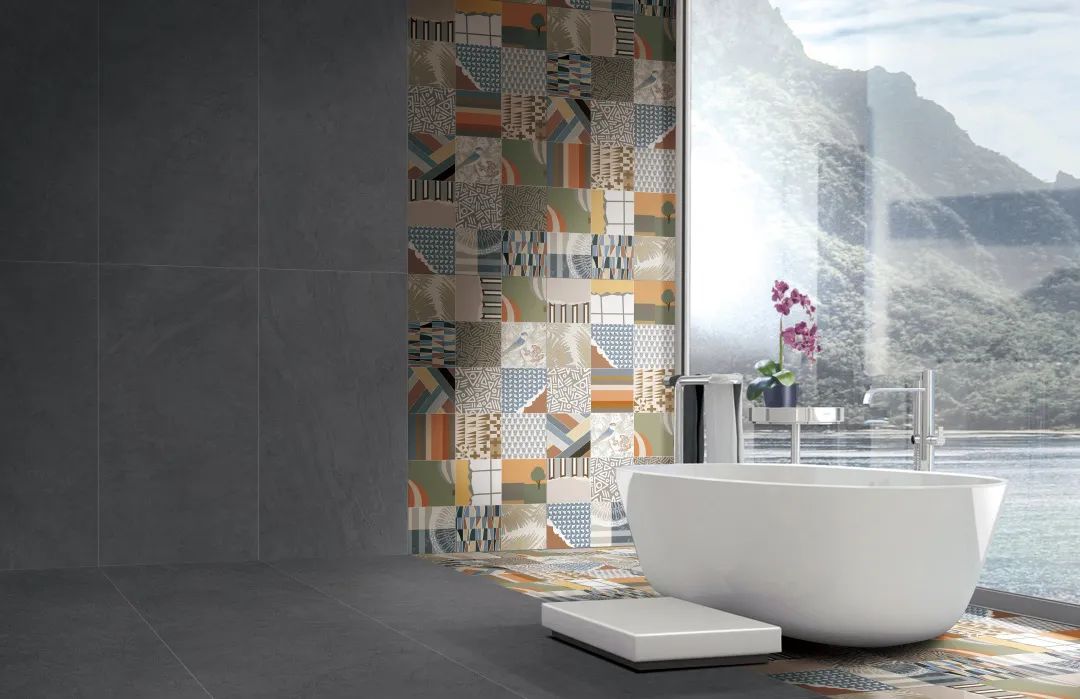 600x1200mm "holiday" tiles are partially decorated, rich in spatial colors, and bring pleasant visual senses.