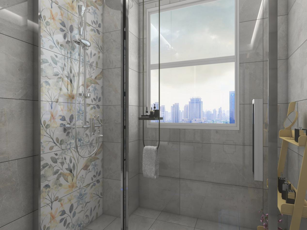 淺灰色調(diào)的衛(wèi)生間顯得格外干凈,整潔,舒適;寫實的小清新綠植圖案花磚,為整個空間增添生機。
