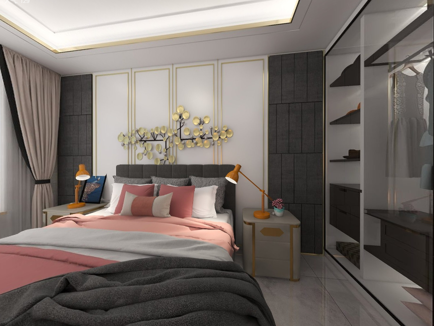 粉色被鋪夾帶著甜膩的幸福氣息,在溫柔有愛的臥室里,讓你沉浸于浪漫的夢境里。
