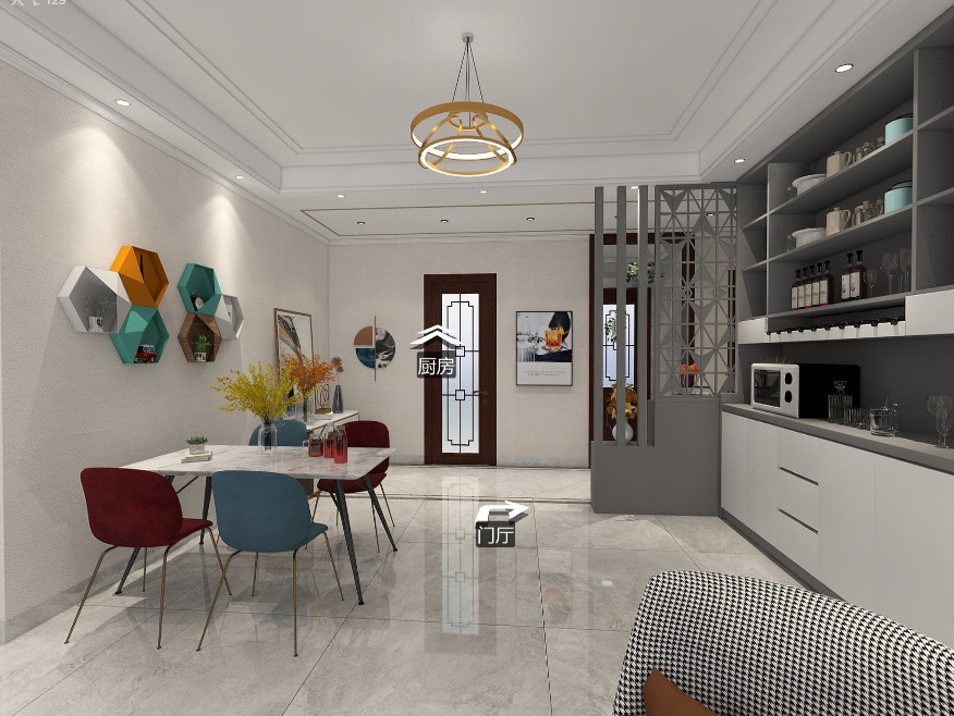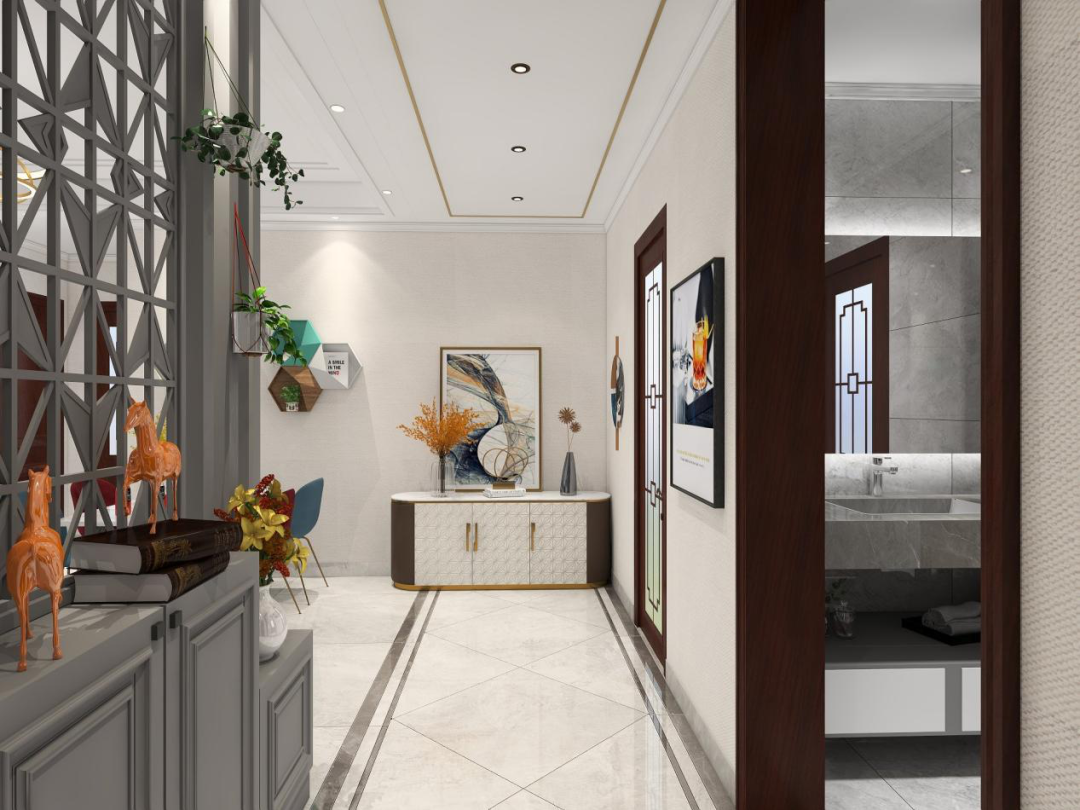 The simple and beautiful aisle shape creates the first indoor scenery line. The wooden screens are beautiful and unique, so that the living room and the bathroom are not directly opposed to each other.