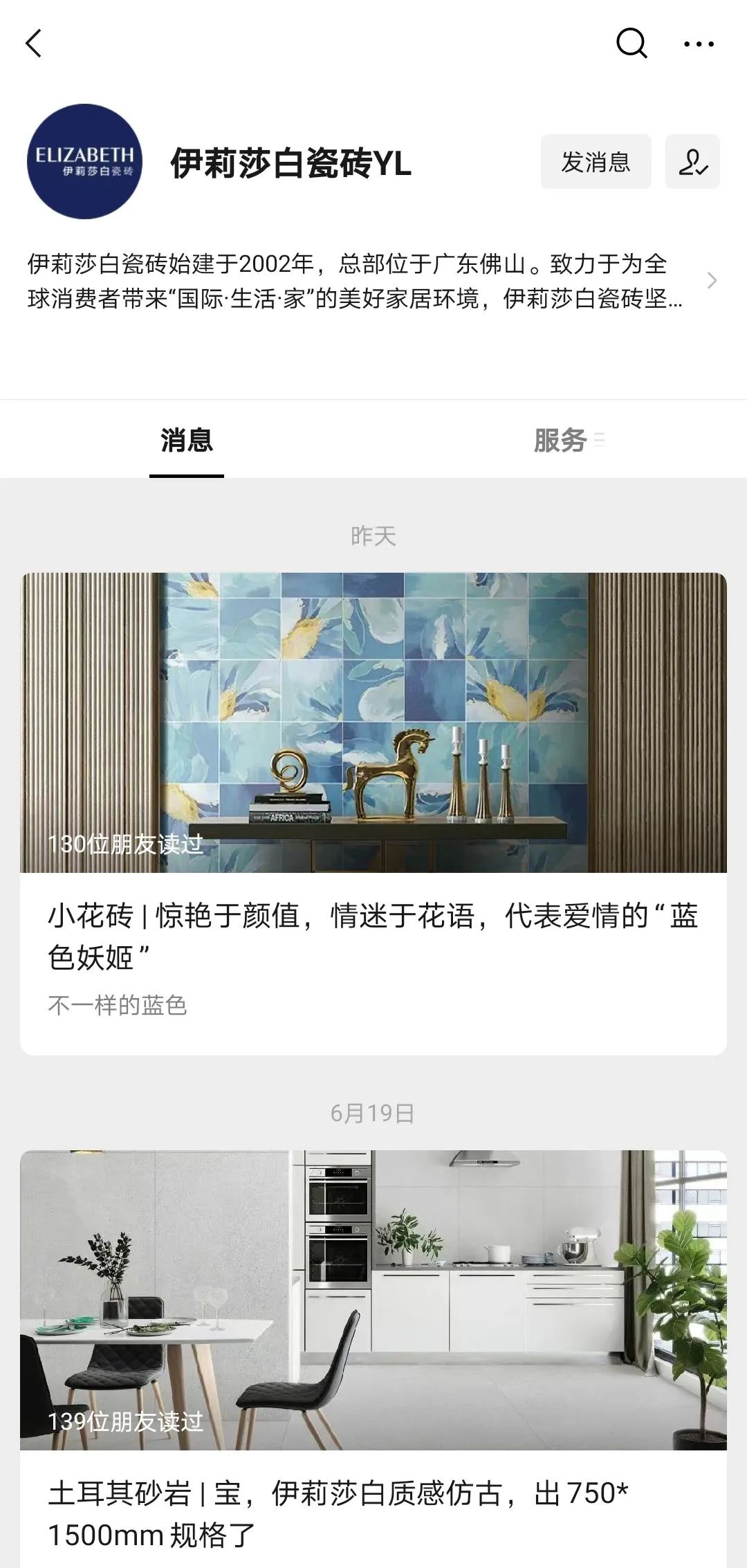 歡迎關(guān)注伊莉莎白瓷磚各大平臺賬號,