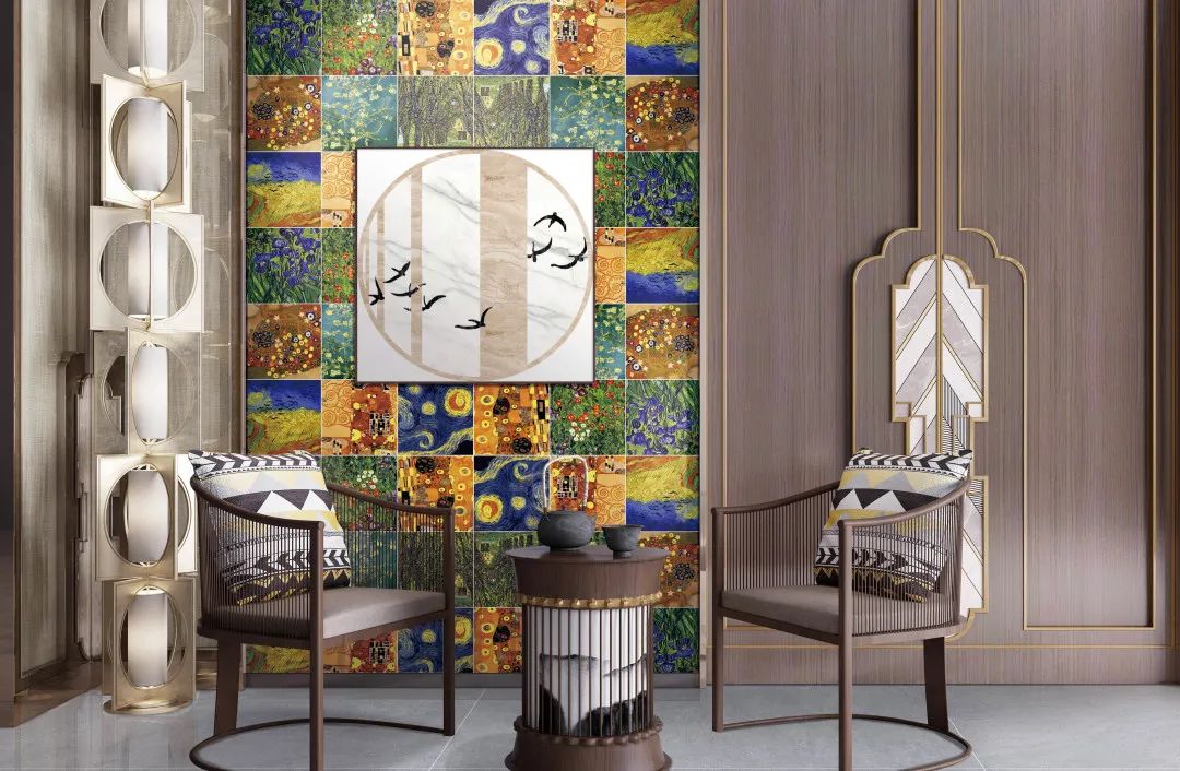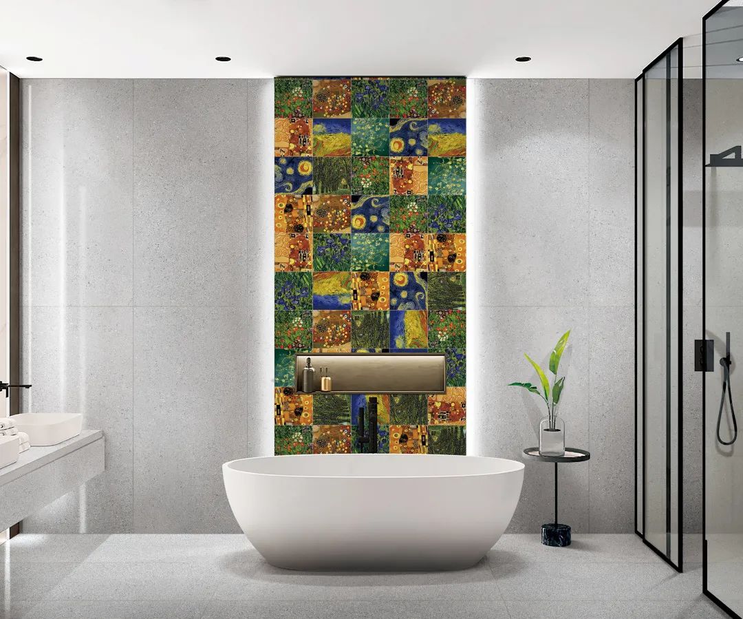 2 | Three-dimensional art, one brick with multiple pictures Applying unique new gilt craftsmanship, oil painting color art design, highly replicating famous paintings; 9 layouts with different patterns, which can be combined and pasted at will. |