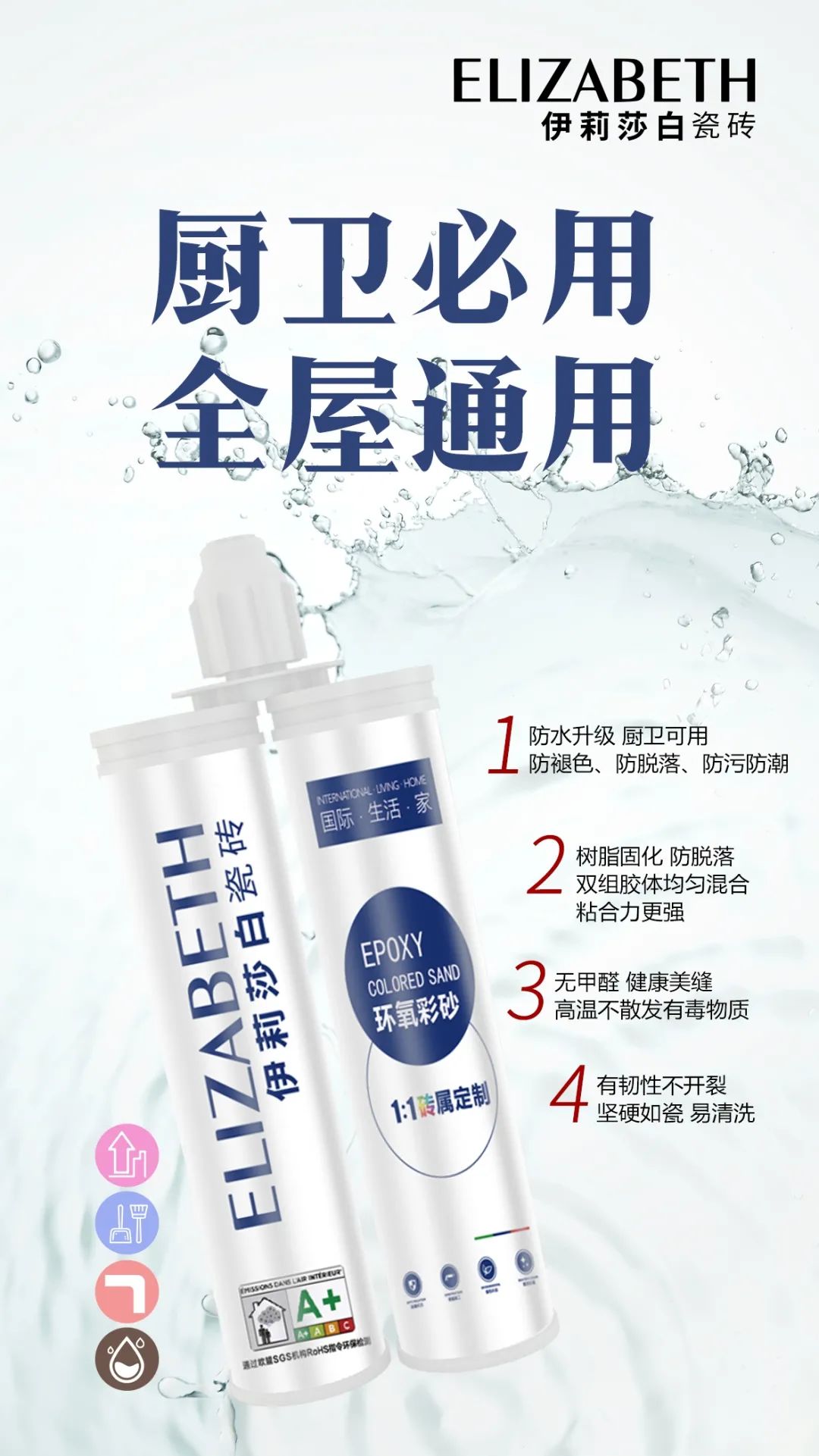 2)SGS歐盟檢測環(huán)保認(rèn)證:認(rèn)證標(biāo)準(zhǔn)不具有醛、苯、甲苯、二甲苯、重金屬等有害致癌物,綠色環(huán)保、防水防霉、堅硬如瓷持久如新等超強縫隙美化處理效果。做到歐盟國家這個標(biāo)準(zhǔn)的材料可進(jìn)出口。