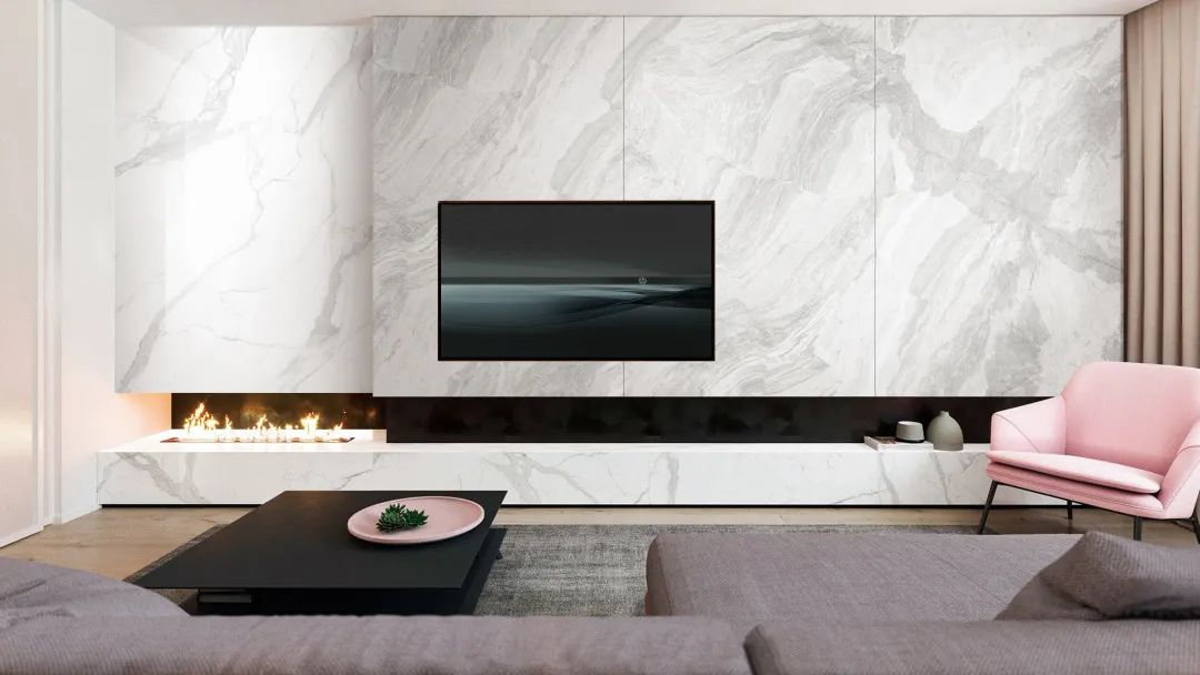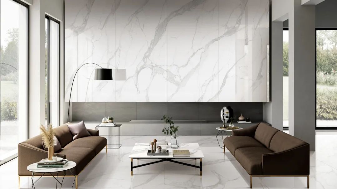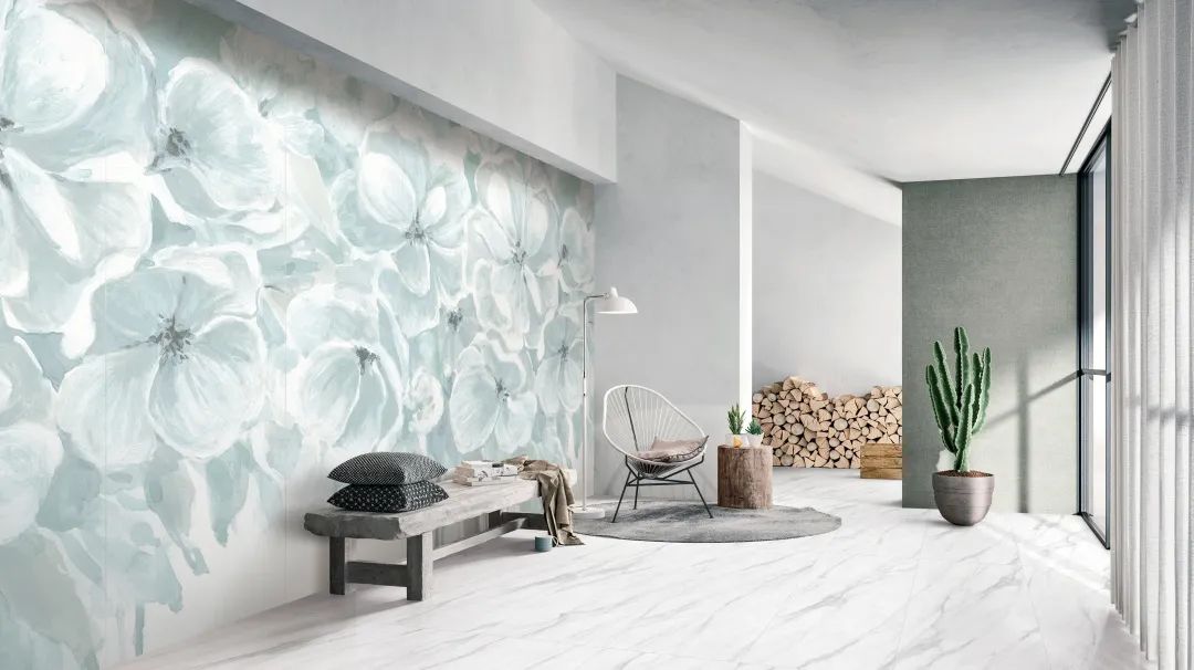打造現(xiàn)代居室,白色系“卡拉拉”連紋上墻,外加一束綠植裝飾,滿屋清新舒適。