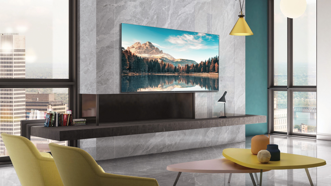 嵌入式的電視背景墻,巖板根據(jù)電視的尺寸進(jìn)行切割,把電視嵌入背景墻里,兩者整合一體,整體視覺很統(tǒng)一,也顯得空間更加開闊明朗。