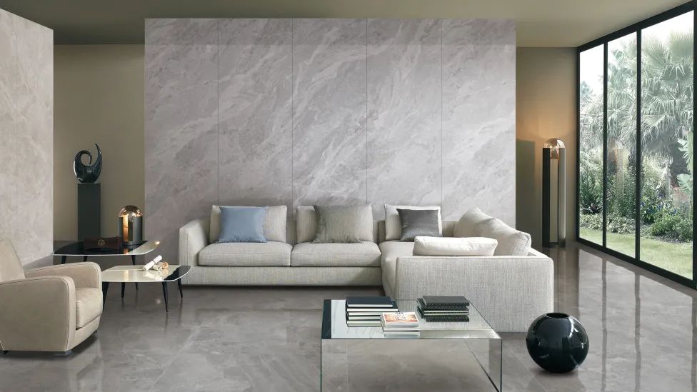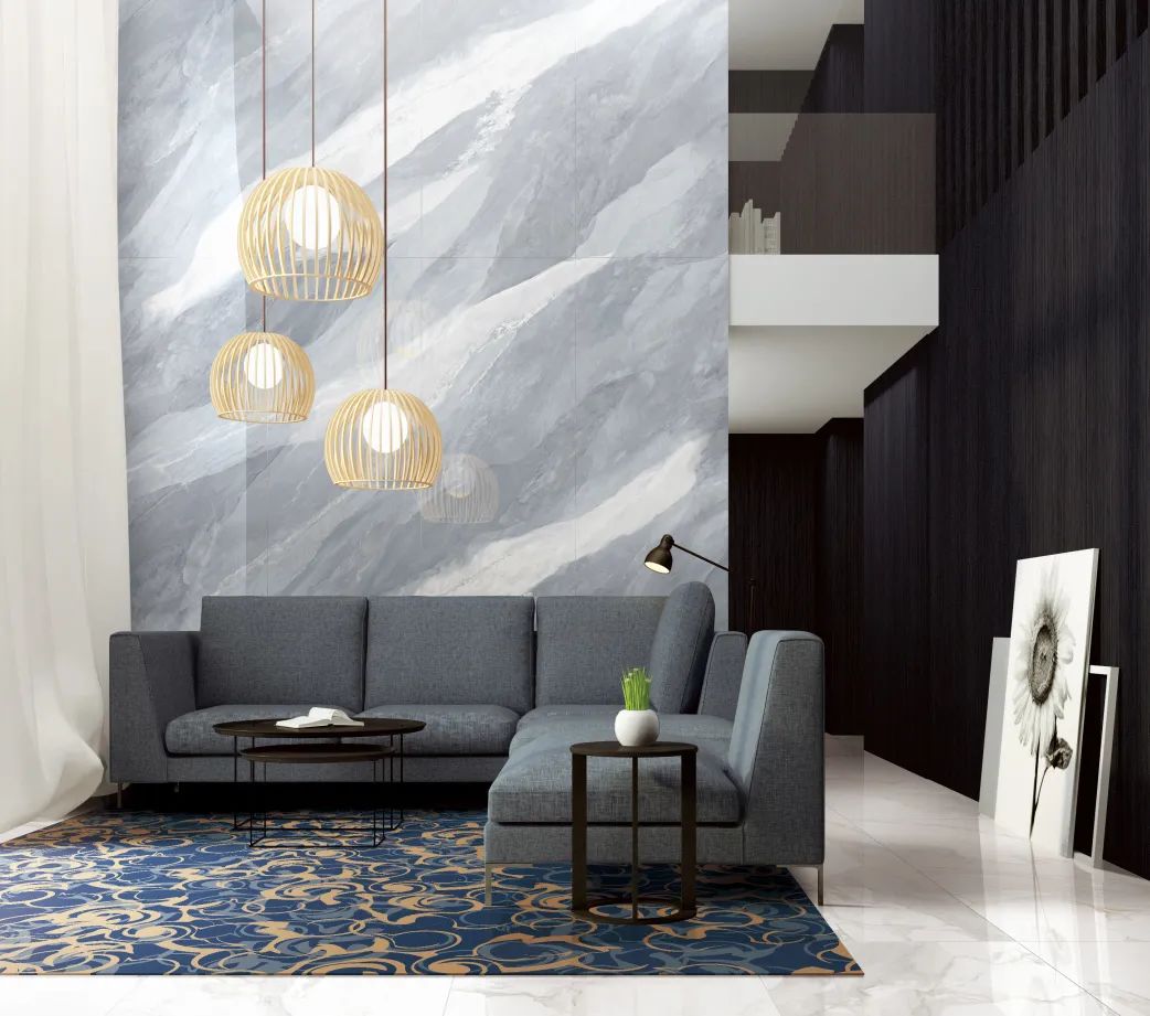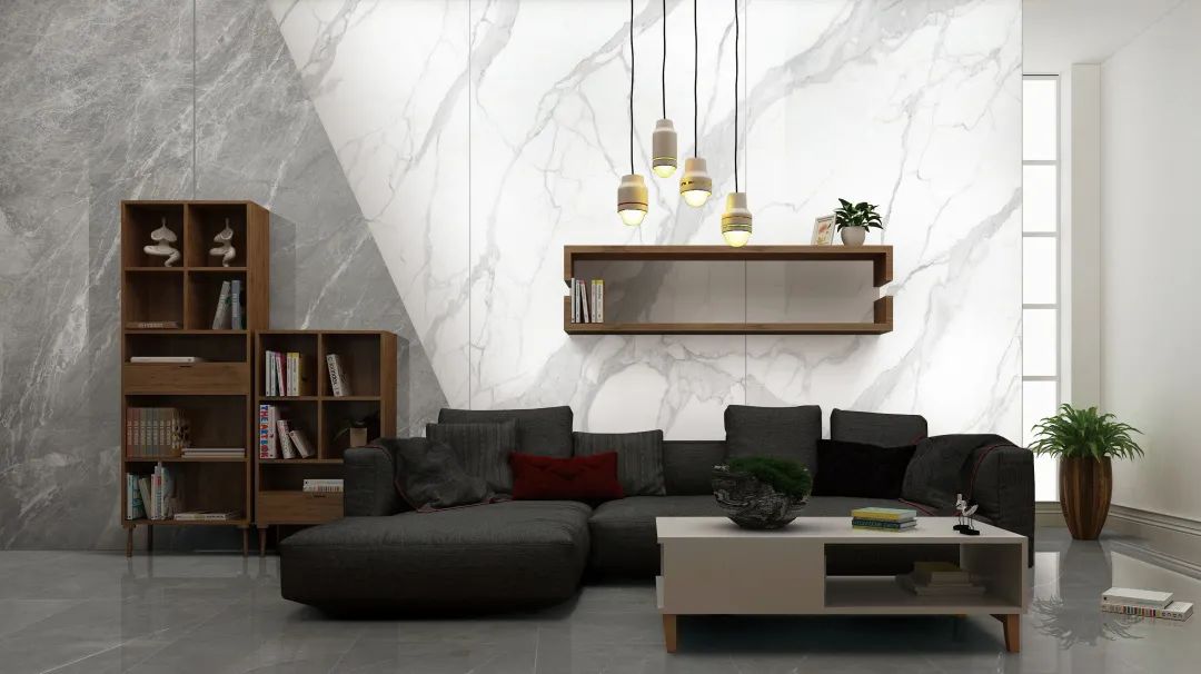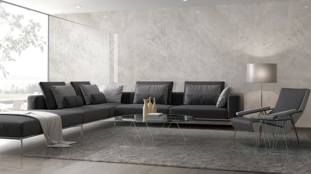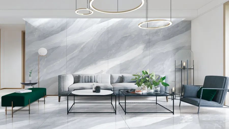 800×2600mm的“卡斯特灰”,有著幾分優(yōu)雅知性;多片紋理相連,延伸鋪貼沙發(fā)背景墻,現(xiàn)代簡潔,落落大方。