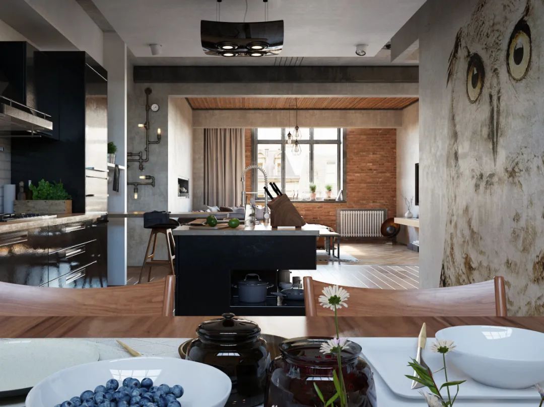 The most notable feature of the loft decoration style is the tall and open space structure.