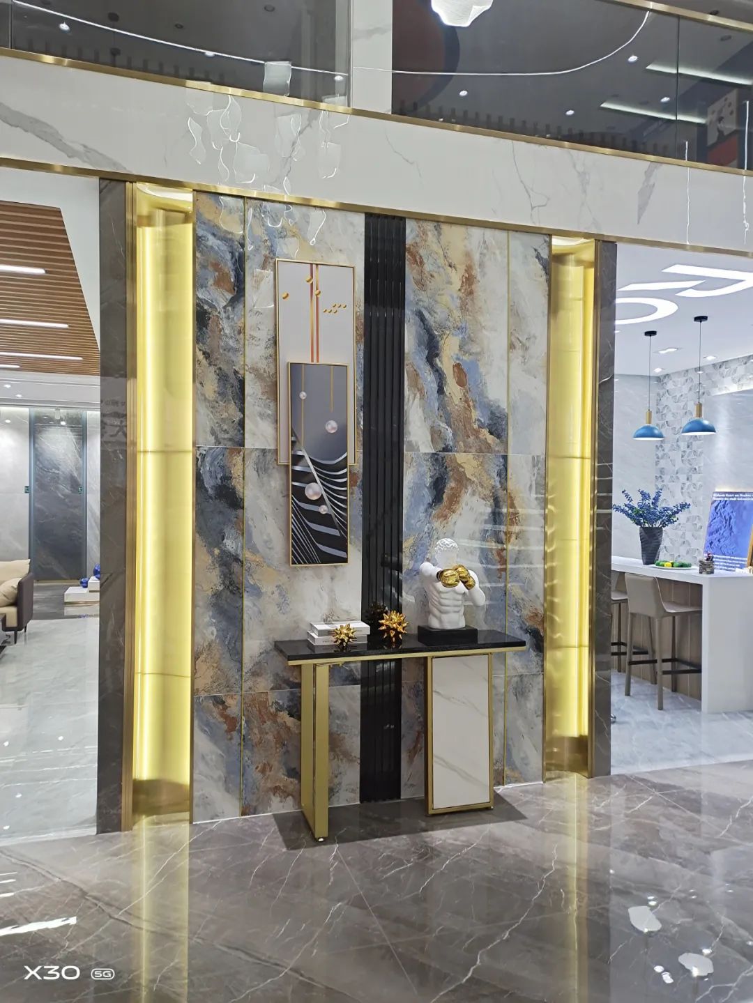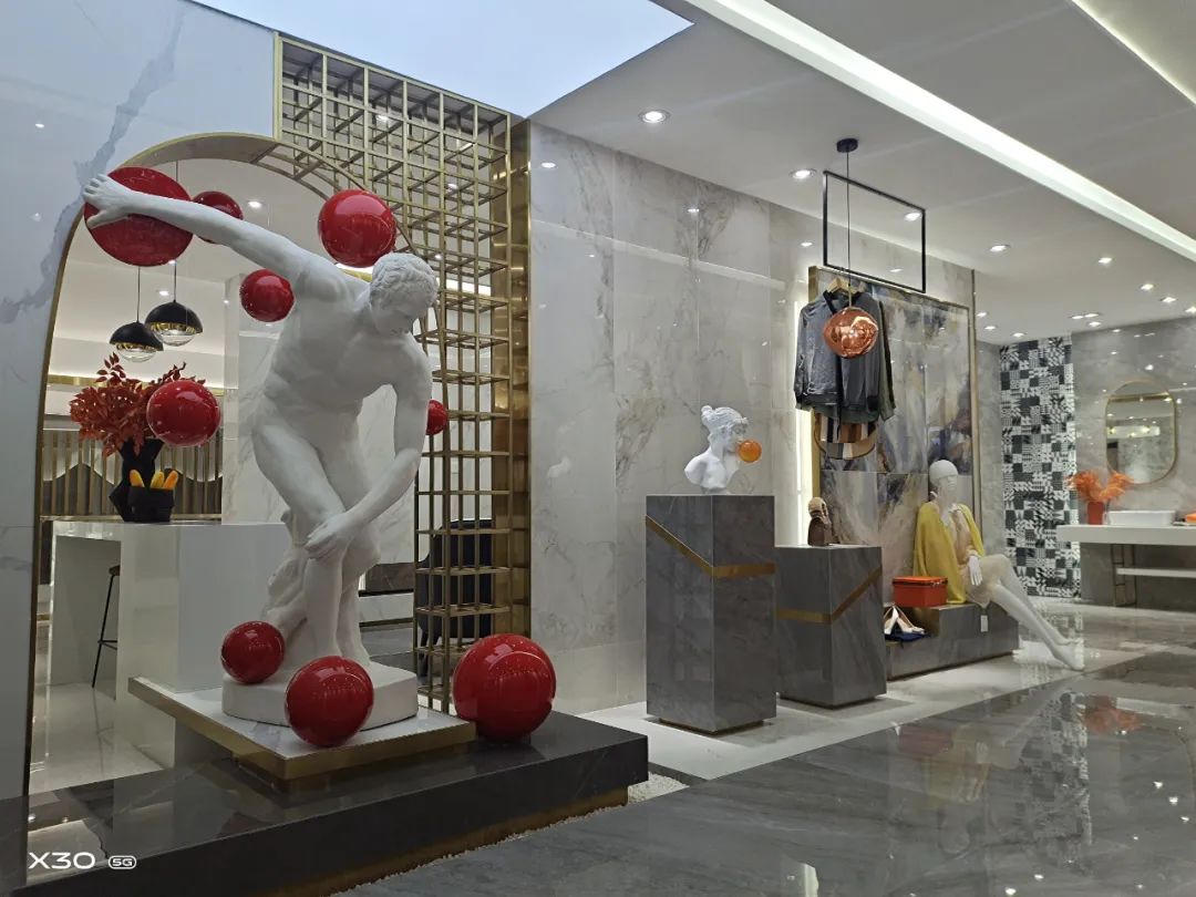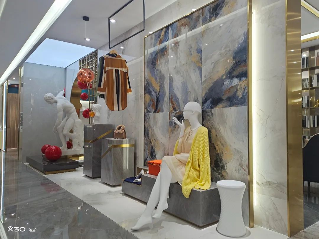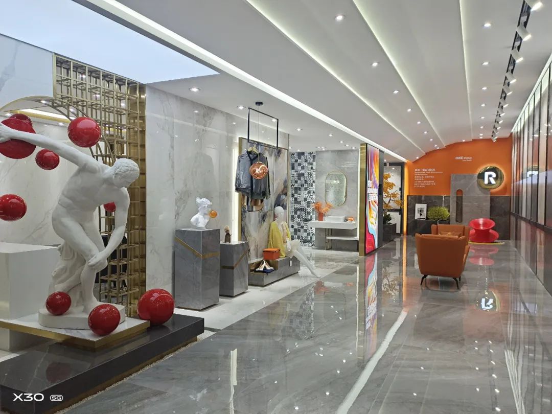店內(nèi)包攬ROMANTIC最新產(chǎn)品,除了巖板、大板、各種規(guī)格大理瓷磚系列產(chǎn)品等等,更有奠定了品牌特色根基的瓷質(zhì)模具藝術(shù)磚系列。