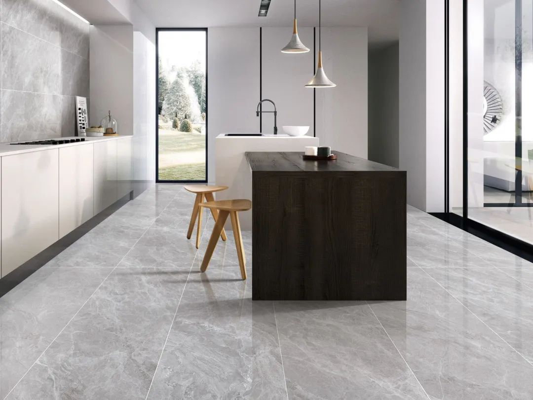 簡(jiǎn)約至上,開(kāi)放性的廚房更顯實(shí)用;“珀斯灰”具有優(yōu)質(zhì)的通體磚特性,上墻下地應(yīng)用自如。