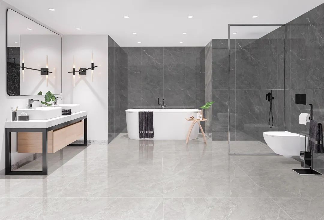 灰白色彩的對(duì)比,讓空間格局愈加明顯;“克里特灰”上墻,創(chuàng)造一個(gè)簡(jiǎn)潔有力,沉靜簡(jiǎn)美的現(xiàn)代衛(wèi)生間。