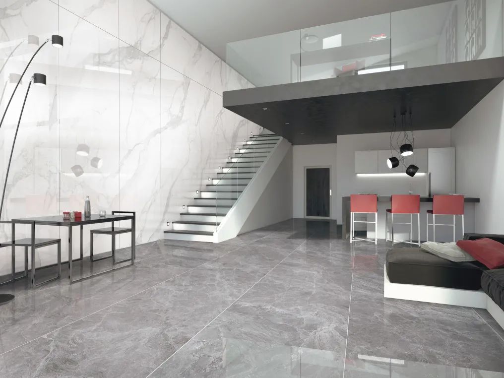 豐富細(xì)膩的白色細(xì)紋,在灰色磚面上靈活多變,極具靈動(dòng)感。