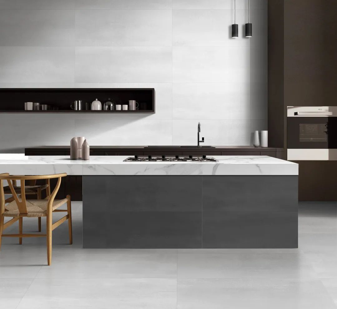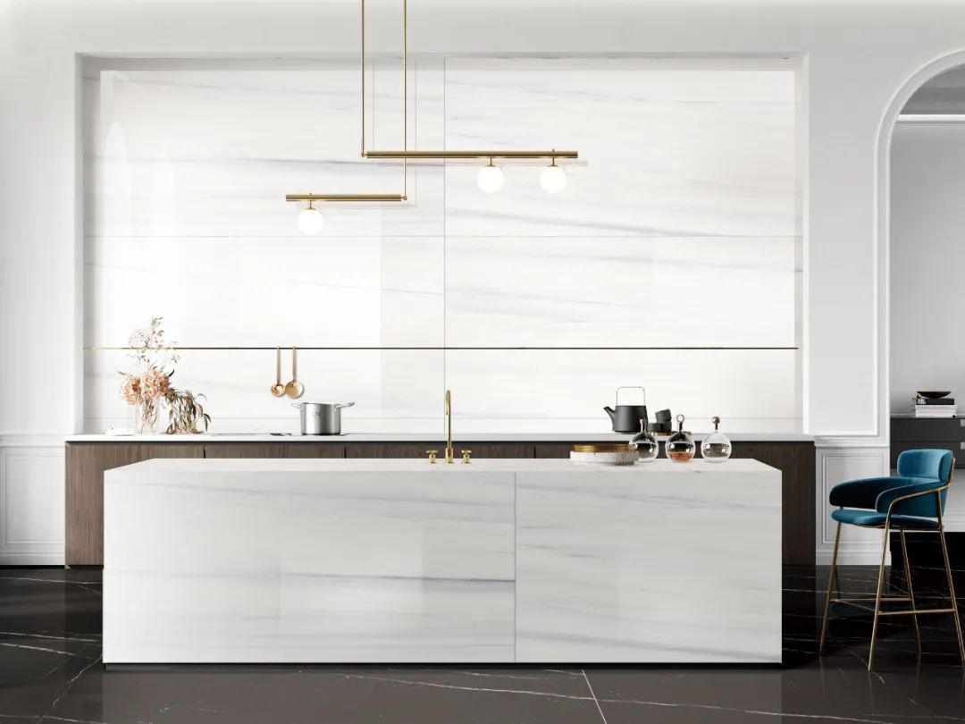 The minimalist open design, "Turkish sandstone Series" wall tiles and floor tiles are perfectly matched, and even the stone color of the island is consistent, and the entire space is particularly simple and clean.