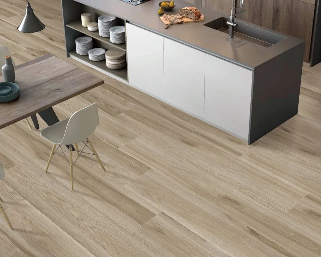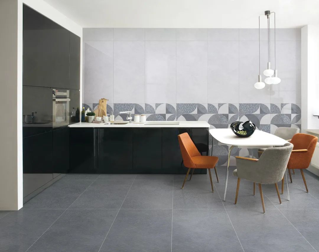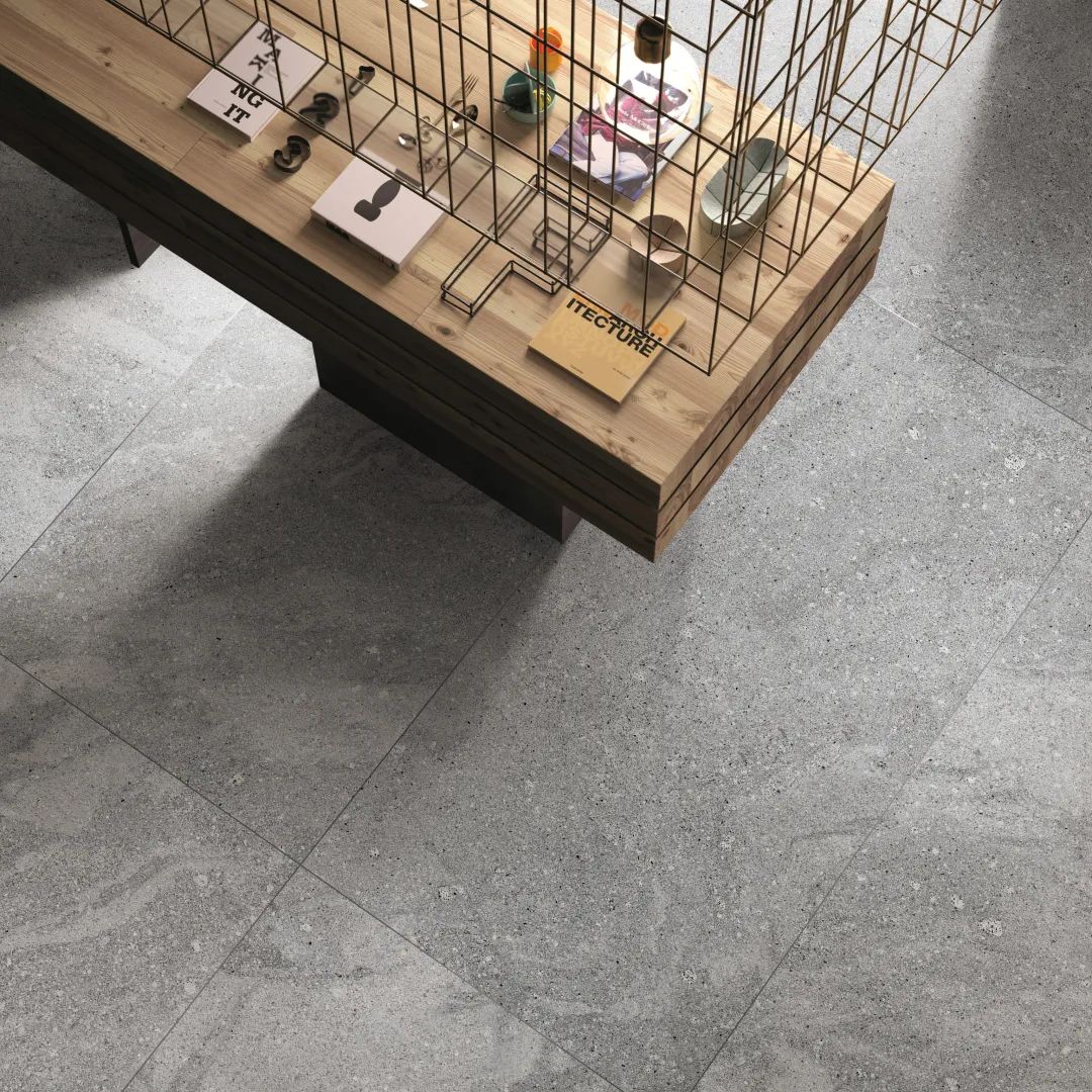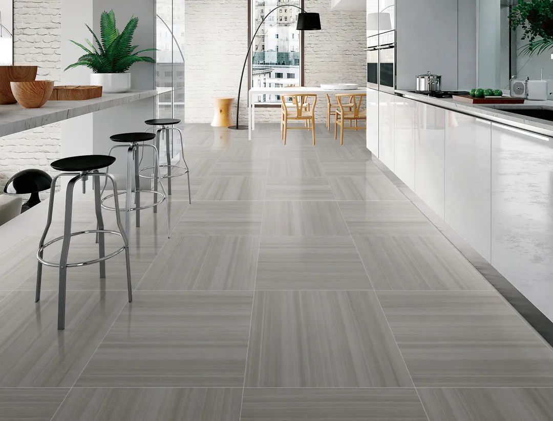 “山水砂巖”一磚8紋大面積平鋪地面,流水磚紋不動聲色地提升了空間的自然美感。