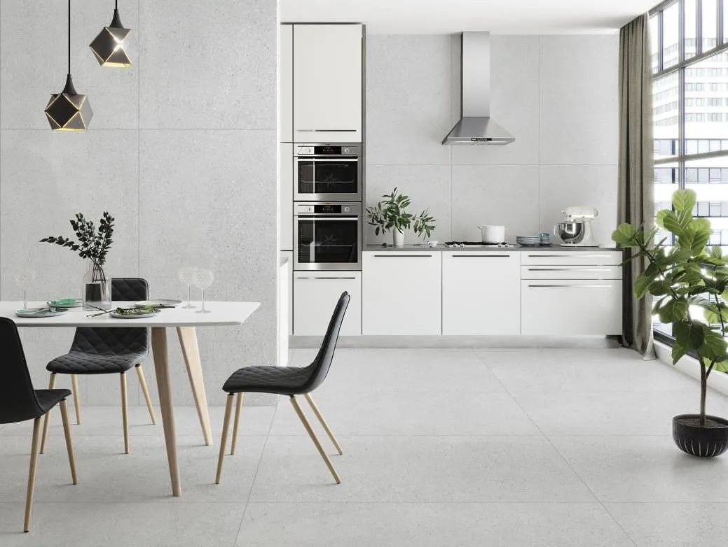 灰色與白色的搭配,營造一個開闊的視野;大面積應用在開放性的空間,更顯簡約大氣。